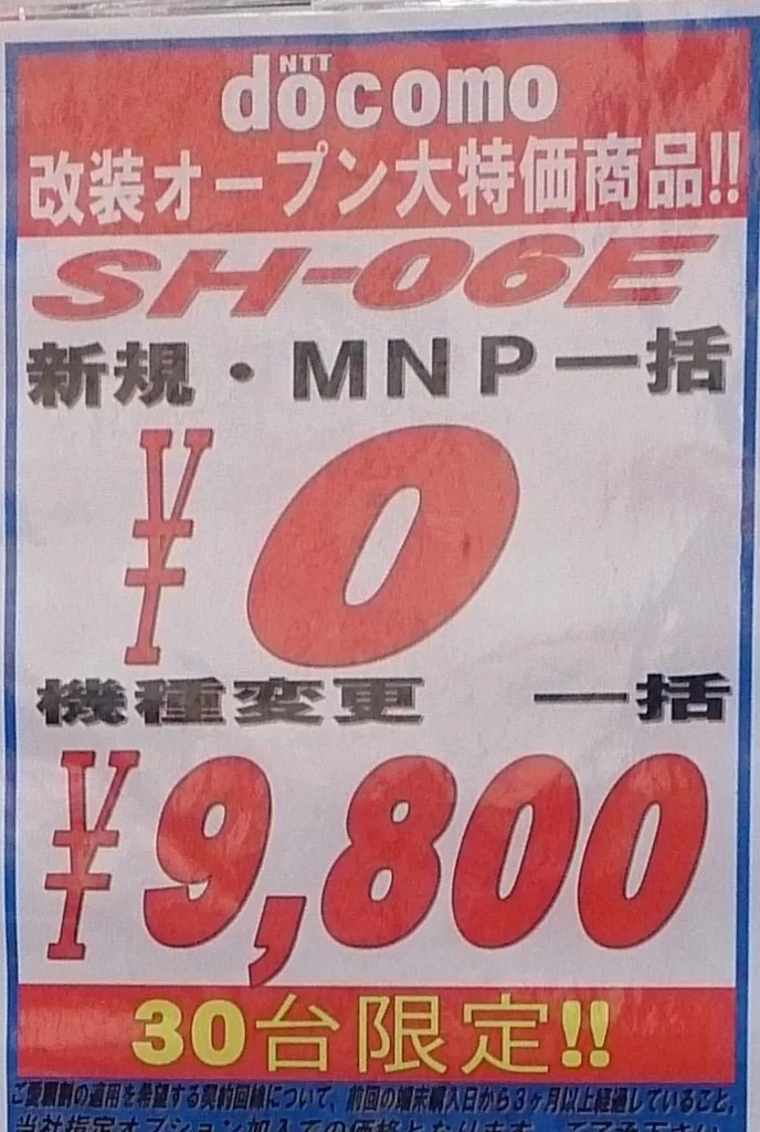 ビックロでは、機種変更は一括9,800円ですが、MNPと新規は4,800円と微妙な値段。