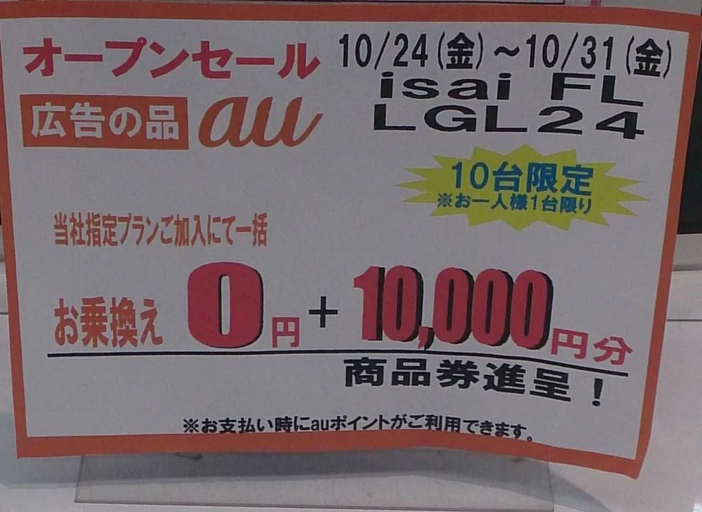 携帯ショップでは、2台で70,000円程度キャッシュバックが実施されています。