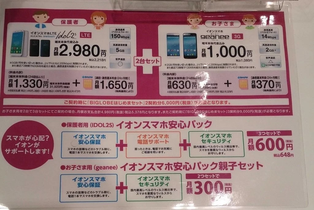 最後に先週から販売が始まった、親子スマホですが一番目立つところに展示されていました。