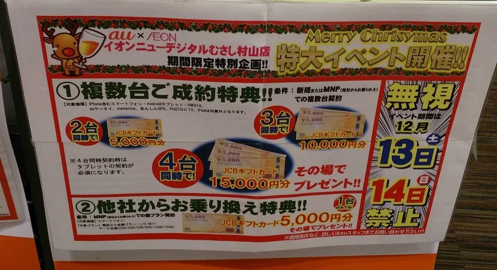 ヤマダ電機でも実施していた複数台のキャンペーンですが、なぜかイオンニューコムでは4台同時の時にタブレット契約必須との記述が・・・。