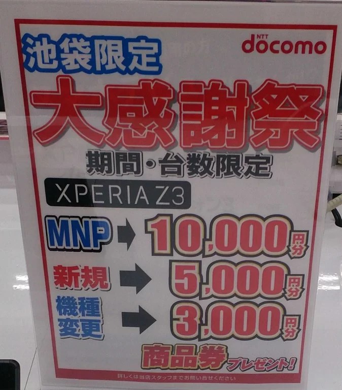 ドコモ Xperia Z3のSO-01Gのキャッシュバックを開始するも・・・2015年1月24日今週から量販店でもドコモのXperia Z3のSO-01Gにキャッシュバックを開始したようです。 ただ金額が10,000円というかなり微妙な金額・・・。となりで一括0円で販売している端末を70,000円近く払って買うべきかどうか・・・。(; ̄Д ̄) docomo,Xperiadocomo,SO-01G,Xperia,Xperia Z3Posted by mobilego