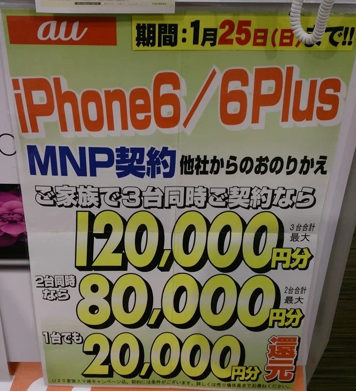 今週はiPhone6関係のキャンペーン競争がauとソフトバンクの間で起きていました。