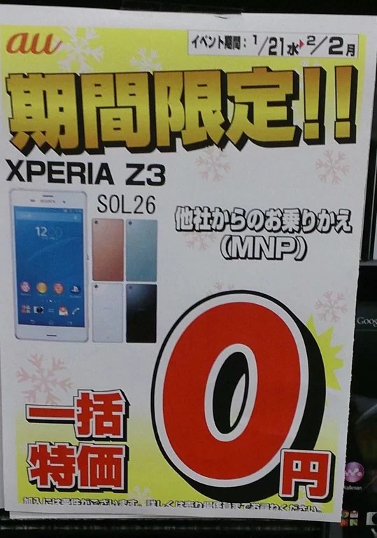 iPhoneで激しい競争をしているauとソフトバンクは、Xperia Z3でも激しい競争をしています。