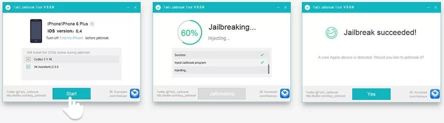 5.脱獄を開始するためにスタートボタンをクリックします。