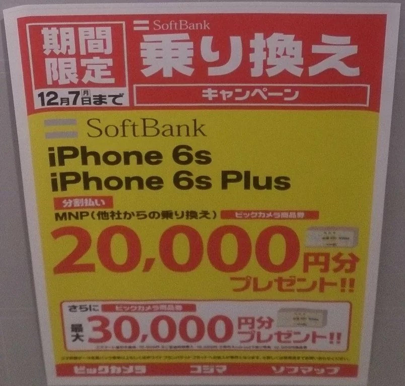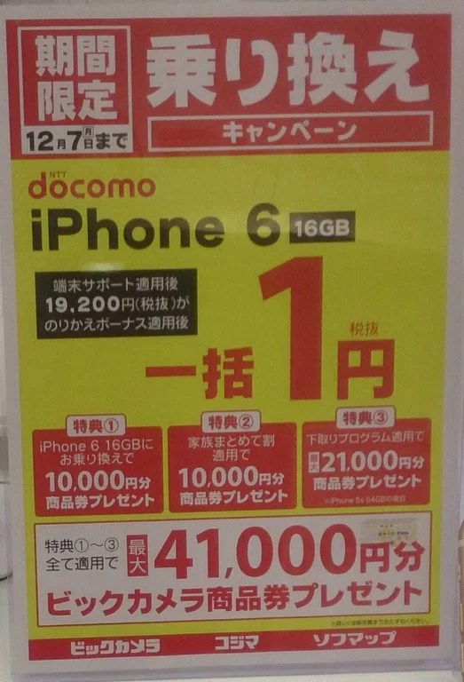 2015年12月第1週目 量販店iPhone6とiPhone6 Plusの状況