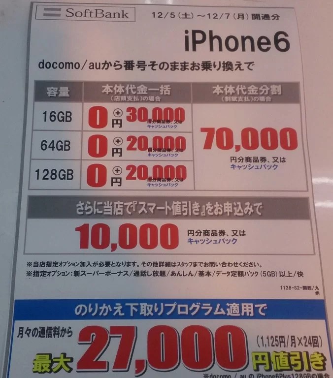 今週は各キャリアさらにiPhone6へのCBを増額してきました。