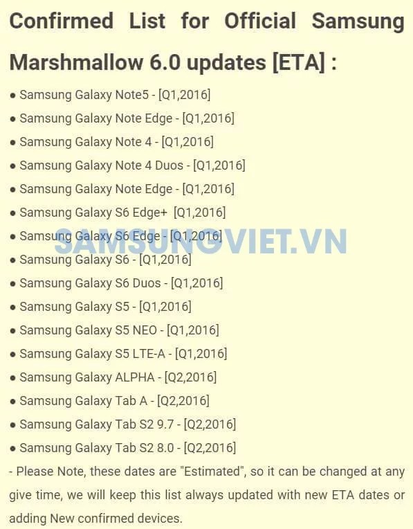 Galaxy Note4シリーズとGalaxy S6シリーズが2016年Q1に、Galxy Tabシリーズなどが2016年Q2にアップデートを予定しています。