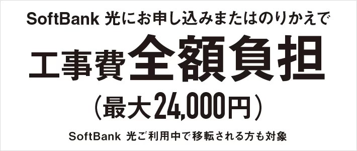 ソフトバンクは指定期間内に引越した場合、もしくはソフトバンク光に申し込んだ場合に工事費24,000円を無料にするキャンペーンを開始しました。