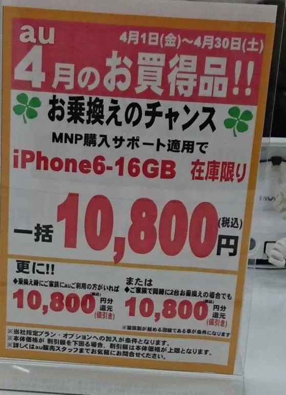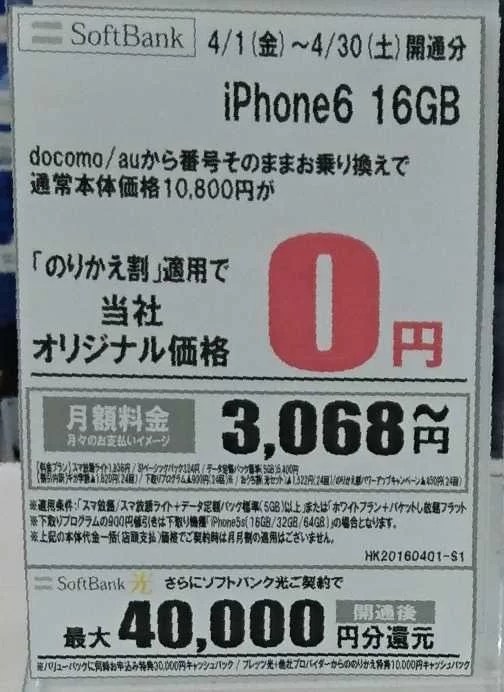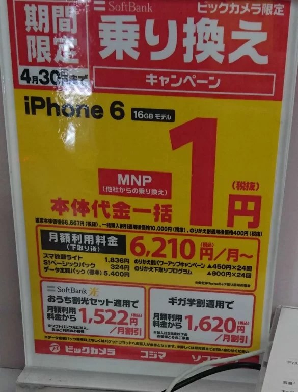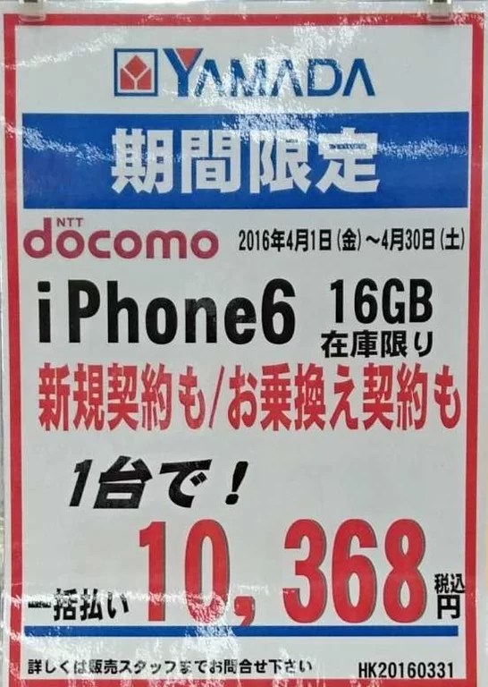 2016年4月第1週目 量販店iPhone6とiPhone6 Plusの状況