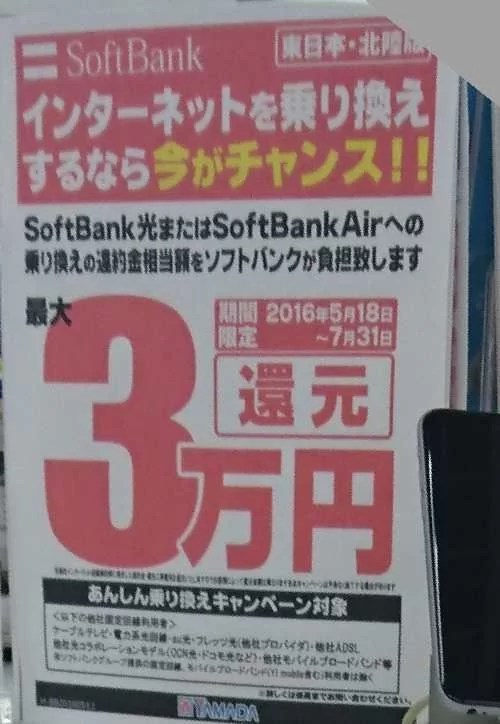 2016年7月第2週目 光回線の状況2016年7月9日あまり頻繁に変更できない光回線ですが、いろいろ熱くなってきています。 まずソフトバンクが1台につき10,000円のCBを実施すると提示しています。ソフトバンクは特に光関係のポップが多いのですが、苦戦しているのでしょうか? au,docomo,softbank,量販店au,docomo,softbank,量販店Posted by mobilego