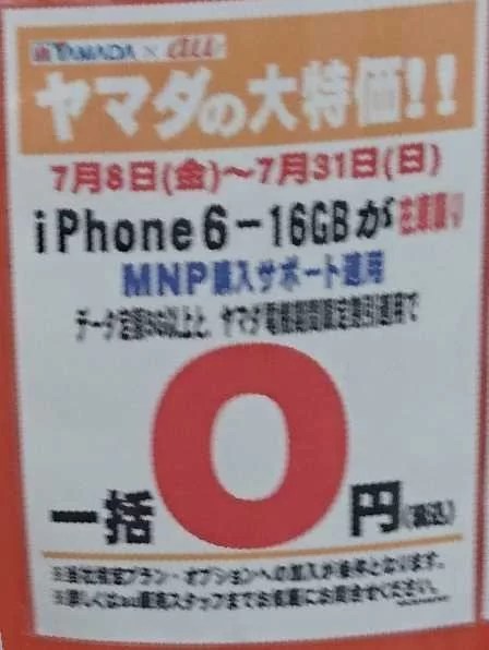 2016年7月第3週目 量販店iPhone6とiPhone6 Plusの状況2016年7月16日久しぶりの3連休ということで、通常は盛り上がるのですが・・・。天気と同様に不安定で曇りがちな模様でした。量販店では久しぶりにドコモもiphone6のポップを出していました。ソフトバンクとauはいつもどおりですが、ドコモがポップを出すのは珍しいです。ただ64GBで且つ10,000円超えているのはどうでしょうか?なお注目は、ドコモのキャンペーンが7/18までとなっていることです。 iphone6,iPhone6 Plus,量販店iphone6,iPhone6 Plus,量販店Posted by mobilego