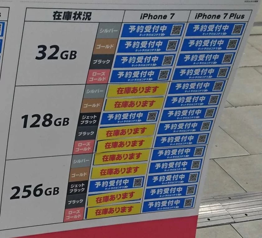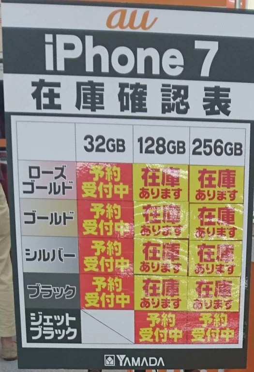 2016年9月第4週目 量販店iPhone7とiPhone7 Plusの状況