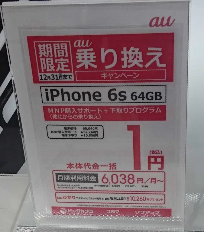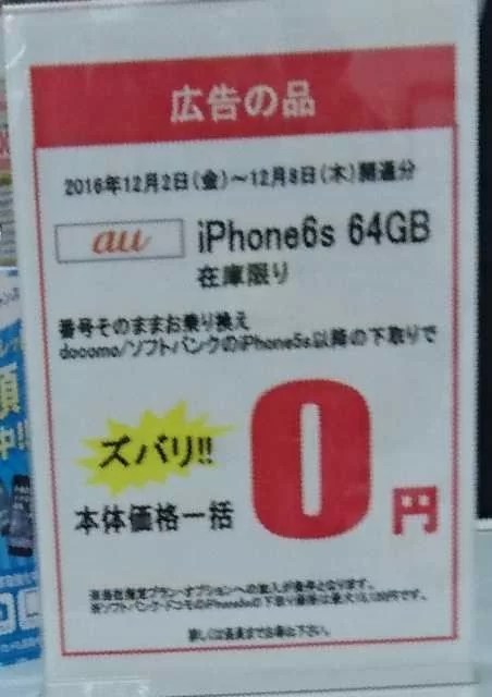2016年12月第1週目 量販店iPhone6sとiPhone6s Plusの状況2016年12月3日ここしばらくiPhone6sはほぼ蚊帳の外状態でしたが、今月に入って量販店がポップを再開しました。ソフトバンクは頑張っていましたが、auとdocomoも再度力を入れだしたようです。何れも64GBというのは何か理由があるのでしょうか?年末に向けたキャンペーン用の端末なのかもしれませんが、iPhone7の実質販売価格が30,000円前後まで落ちている状況を考えると購入するべきか疑問が残ります。 iPhone6s,iPhone6sPlus,量販店iPhone6s,iPhone6sPlus,量販店Posted by mobilego