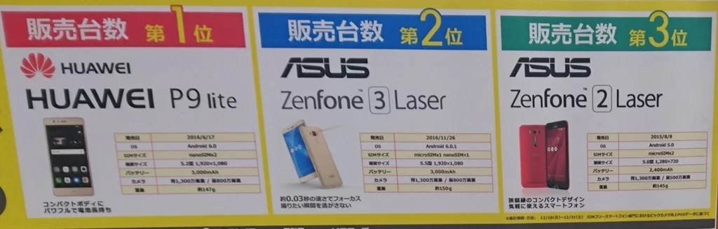 2017年1月第2週目 ビックカメラSimフリー端末ランキング