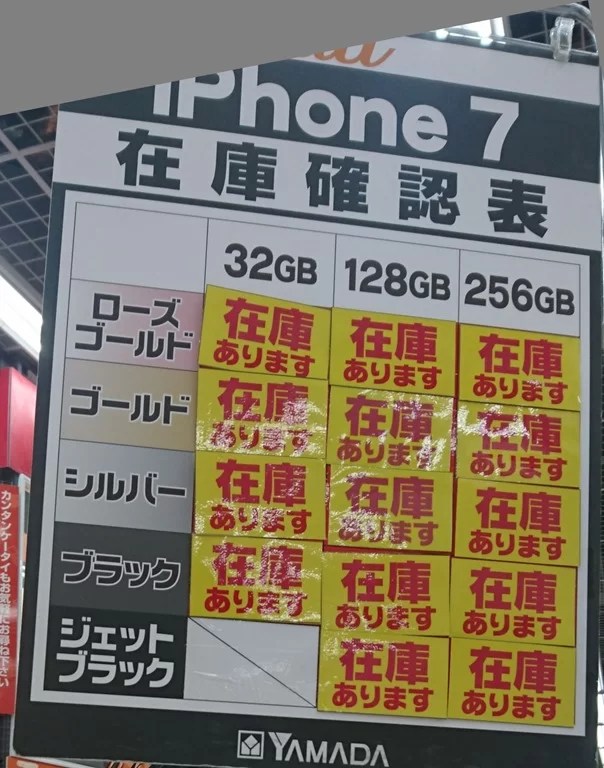 そのかわりiPhone7は全てのモデルで在庫がある状況でした。
