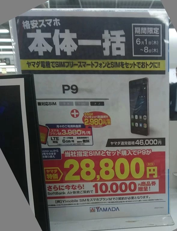 2017年6月第1週目 量販店ワイモバイルの状況2017年6月3日いよいよ6月に入り、大手キャリアの夏モデルが発売となります。SIMフリー機種もそろそろ新しい端末が日本でも発売されると思いますが、既存の機種の在庫処分を実施する必要があります。3月の底値から上昇基調であったSIMフリー端末も、ようやく価格が下がりはじめました。ただ3月はnovaが12,800円、Huawei P9が22,800円であったので、まだ少し高い状態です。ここから毎週値下がりするのか、それとも当面この価格帯を維持するのか注目です。 ワイモバイル,量販店ワイモバイル,量販店Posted by mobilego