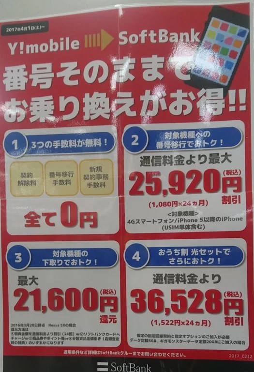 ワイモバイルでユーザーの獲得に努めているソフトバンクですが、一応ワイモバイルからの乗り換えの優遇をアピールしていました。