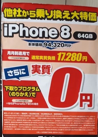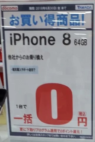 2018年6月第4週目 量販店iPhone8の状況2018年6月23日今週もiPhone8の一括0円販売は継続中です。 全てのキャリアがiPhone8をポップを出しており、やはり主力機種であることは間違いないようです。 この状態は9月まで継続されると思いますが、CBなどの条件は9月に近づくにつれて緩和されてくると思います。 iPhone8,量販店iPhone8,量販店Posted by mobilego