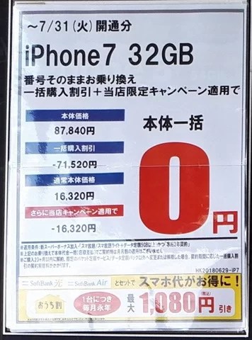 2018年7月第2週目 量販店iPhone7の状況2018年7月14日次期iPhoneの発売まで、2ヶ月となりました。 流石にこの時期にiPhone7のポップを出しているのはソフトバンクのみです。 こちらも7月末までとなっていますが、在庫がある限り販売し続けるのでしょう。 iPhone7,量販店iPhone7,量販店Posted by mobilego