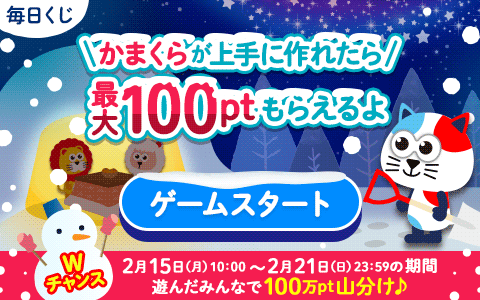1日1回くじを引くことで、抽選で最大100ポイント当たります。