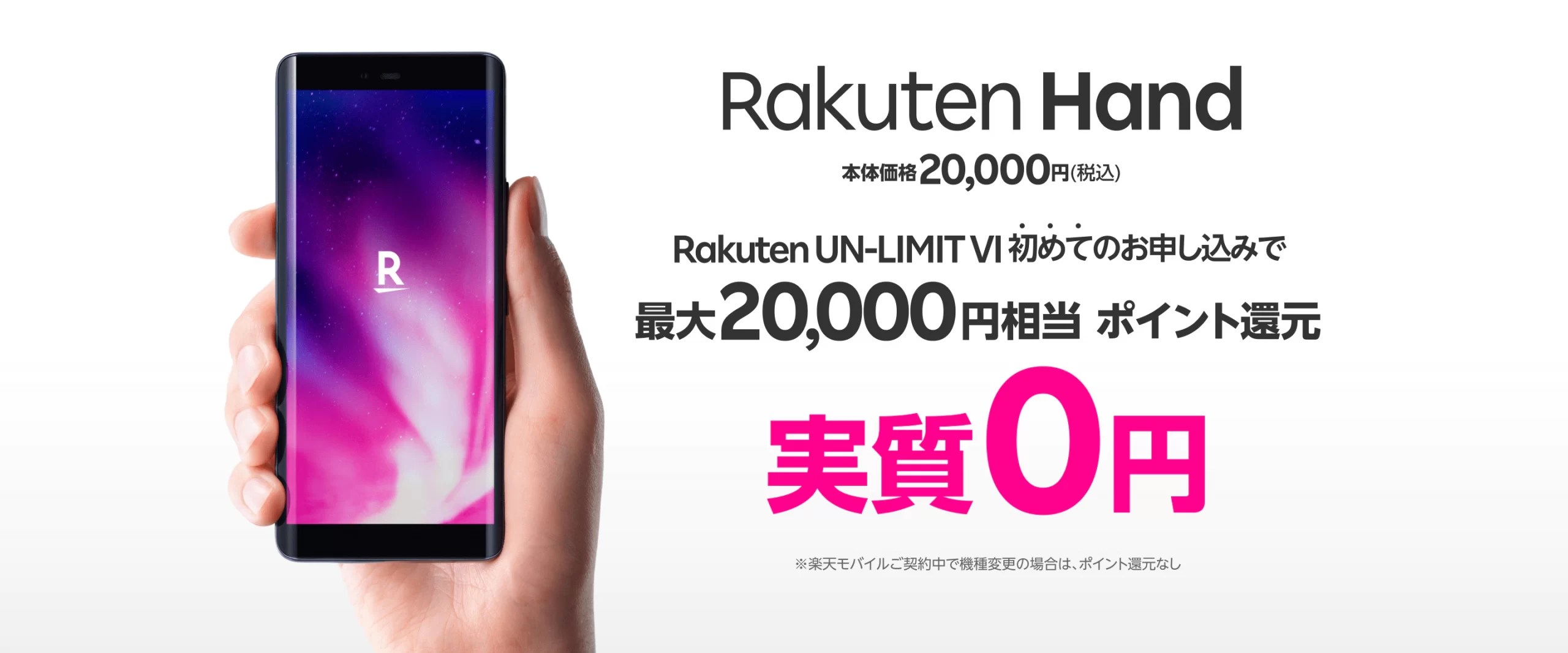 楽天モバイル Rakuten Hand購入で最大20,000ポイントプレゼント