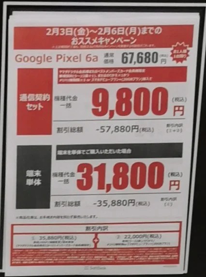 ソフトバンク Google Pixel6aを一括9,800円で販売2023年2月5日 ソフトバンクはGoogle Pixel6aを一括9,800円で販売しています。4月頃にGoogle Pixel7aが発売されると噂されているので、しばらくすると年度末には1円販売が復活するかもれしません。 softbankgoogle,Pixel6a,softbankPosted by mobilego